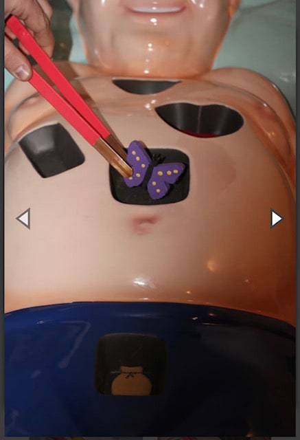 The object of the game is to remove all of his body parts using a tweezers in 60 Seconds if you touch the body while trying to remove the part it will Buzz and also the patient will shout out its disapproval the game also has a digital timer.