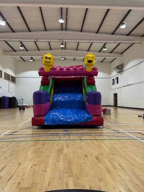 It has all the usual things u would except from us here at champion castles Bish Bash,Obstacles and also an 10ft slide.