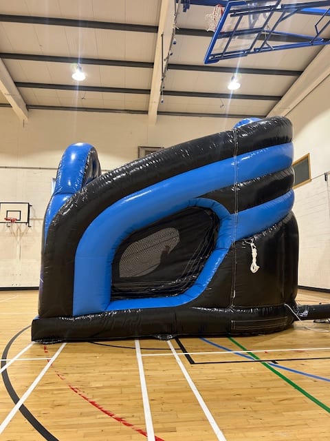 It also boasts an 8ft platform slide,also has a generous bounce area,its fully closed in to keep out the rain and also side netting to keep an eye on the kids as they enjoy themselves.