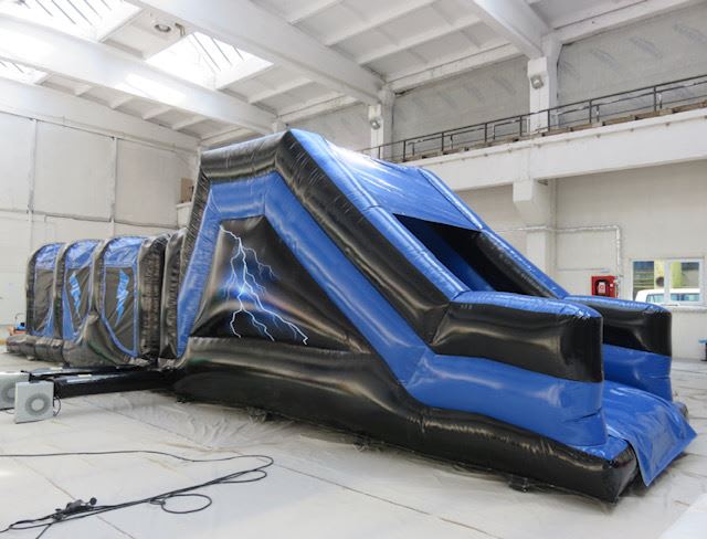 The Lightning obstacle course has been one of our most popular assault courses for 2020 its a real WOW castle the contrast in colours between the blue and black makes it stand out from the crowd.