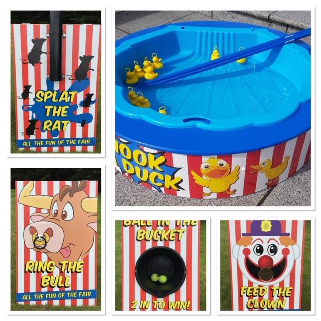 In our Carnival Games Package you have a choice of 5 games and are ideal for all kinds of occasions including fundraisers,family fundays and whole range of other events they can also be hired for communions,confirmations and lots of other family occasions.the list of games are as follows: