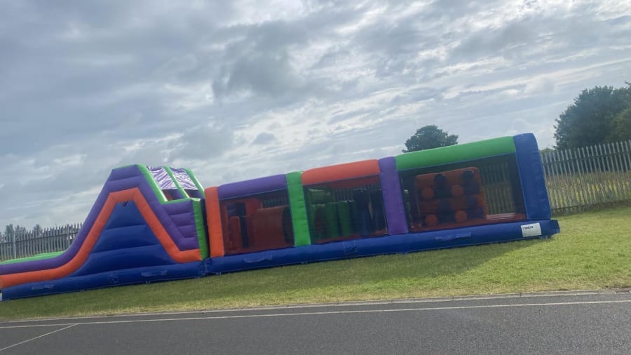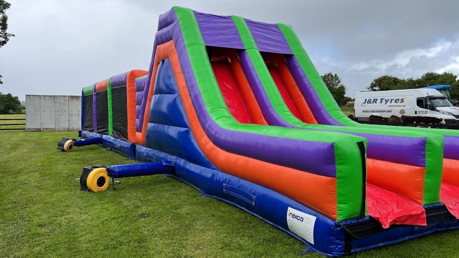 The MXAIMUS obstacle course is brand new for 2024 has a 10ft high slide with relentless bish bash tunnels and rings to jump through.