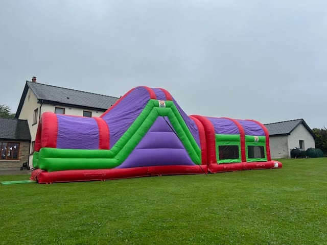 We proudly announce the new and improved version of the Thriller assault course for 2025 it boasts a 10ft high slide and in the obstacle section it has bish bash and tunnels to challenge any youngster that dares to go through it.