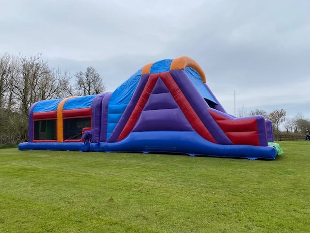 This is a brand new obstacle course for 2021 it contains all the thrills and spills of a assault course of this size but it boasts an 9ft high slide this castle is suitable for wide age range from the younger kids right upto teenagers and even adults.